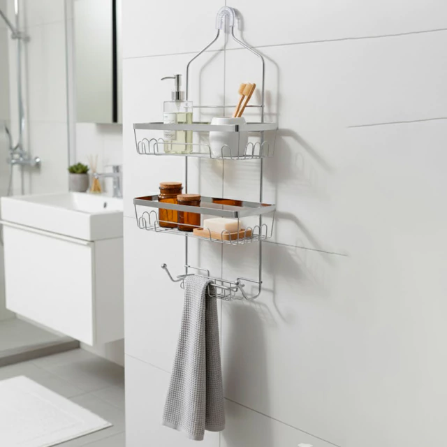 Cuenta con dos niveles amplios donde podés ubicar productos de uso diario como shampoo, acondicionador, cremas, jabones o accesorios de higiene personal. Su diseño abierto facilita el acceso rápido a cada elemento, permitiéndote tener todo siempre a mano y bien organizado. Además, al ser colgante, ayuda a mantener las superficies despejadas, generando una sensación de mayor amplitud y limpieza en el ambiente.