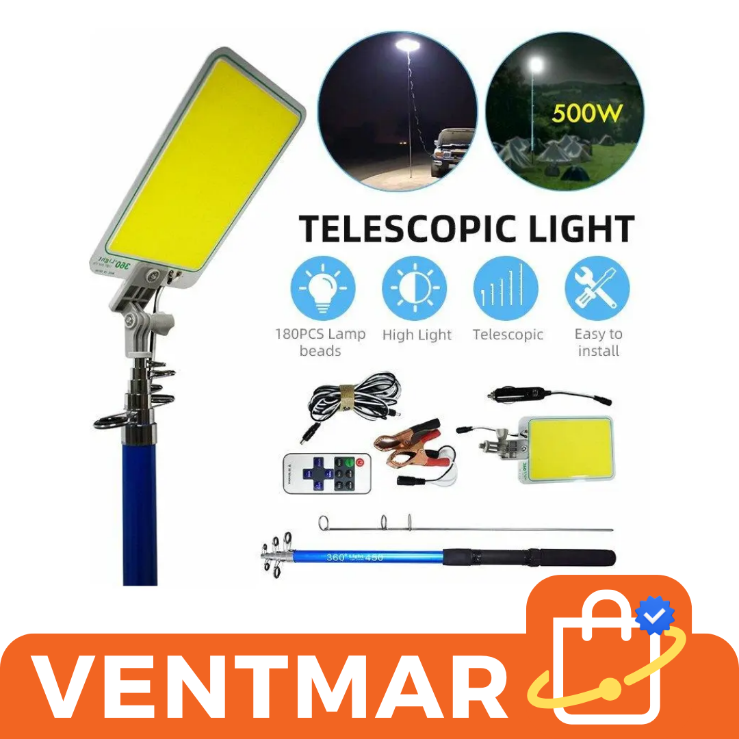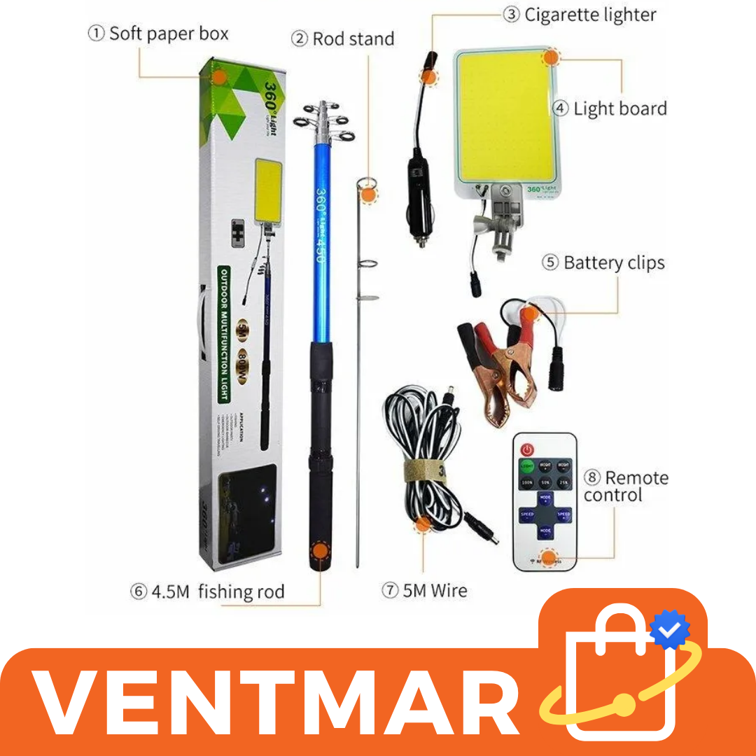 Iluminá tus actividades nocturnas con esta lámpara LED telescópica profesional de 4.5 metros, ideal para pesca, camping, emergencias o trabajos en exteriores. Incluye control remoto y múltiples opciones de conexión para máxima comodidad.