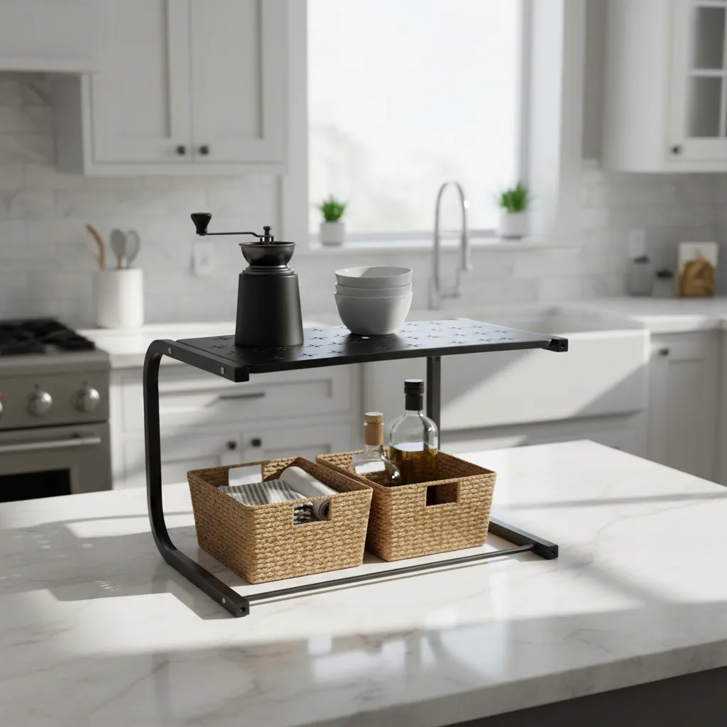 Su estructura resistente y diseño práctico lo convierten en una solución ideal para optimizar la distribución de tu cocina, brindando mayor comodidad en el uso diario y ayudando a mantener todo en su lugar.