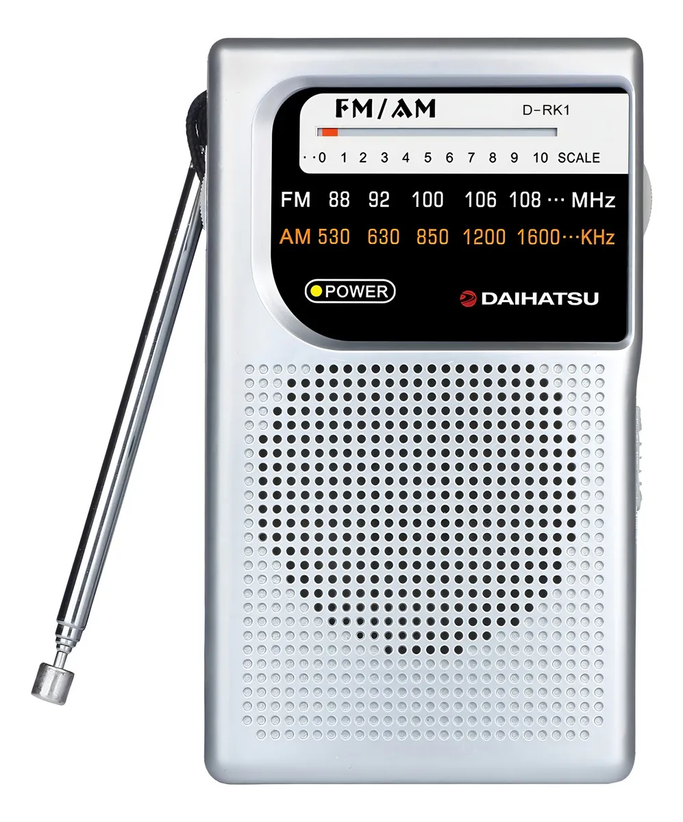 RADIO AM/FM POCKET A PILA CON PARLANTE DAIHATSU ---------------------------------------------------------------------------------------- -¡Disfruta de la RADIO AM/FM POCKET A PILA CON PARLANTE DAIHATSU! -Diseño ergonómico, confortable, liviano y portátil! -Perfecta para llevar a cualquier rincón de tu hogar o a donde prefieras! -Incluye radio FM para sintonizar tu emisora preferida en cualquier momento! -Elaborada con materiales de alta calidad! CARACTERÍSTICAS: Modelo Pocket Daihatsu D-RK1. Incluye parlante. FM 88-108mHz. AM 520-1710kHz. Requiere 2 pilas tipo «AA». Color: Plata.