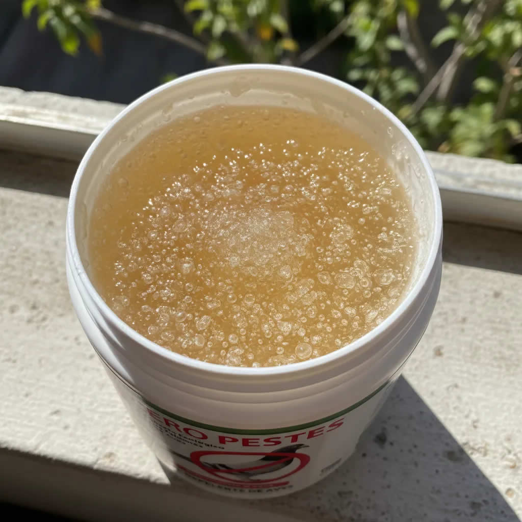 Consiste en un material pegajoso que se aplica en superficies frecuentadas por estas aves y mamíferos voladores. Su propósito es generar una sensación de inestabilidad sin atraparlos, incentivándolos a abandonar el área.