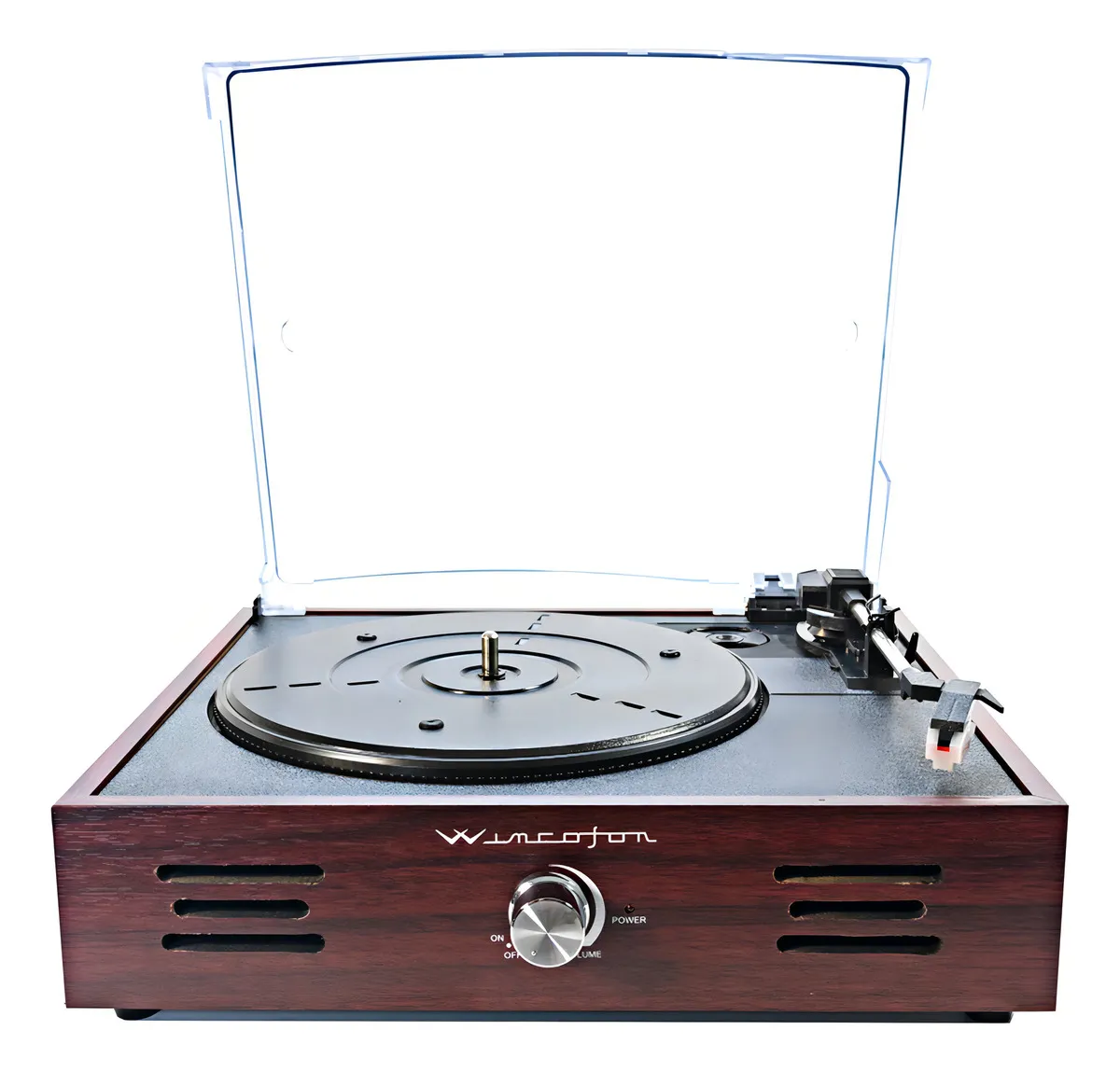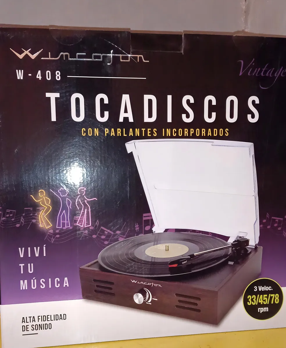 Calidad de audio única Gracias a sus velocidades de reproducción de 33 revoluciones por minuto, podrás ajustar tu tocadiscos y asegurarte de que el vinilo gire a la velocidad correcta para que la aguja de la cápsula pueda recoger, con las máximas garantías, la información contenida en el surco. Con el mecanismo de tracción por correa, disfrutarás de una excelente calidad del sonido, ya que es más constante que otros sistemas. Consiste en una correa conectada al motor y al plato, permitiendo que este último gire. Mayor conexión entre tus dispositivos Al tener altavoces incorporados, este tocadiscos es perfecto para no depender de un artefacto de audio externo y mantener la calidad del sonido.